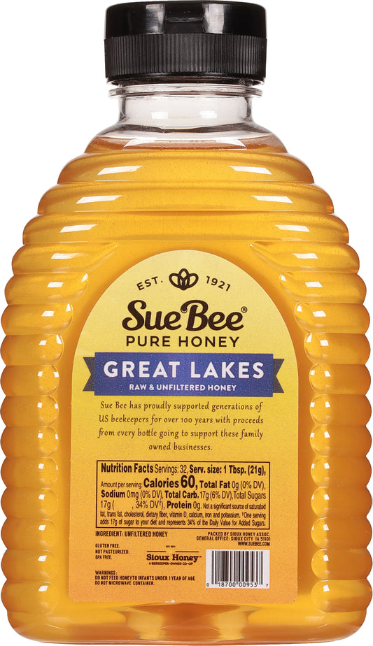 Sue Bee Honey Regional Great Lakes USA Honey, Strained, Unfiltered Beekeeper-Owned Co-op Honey, 24-Ounce