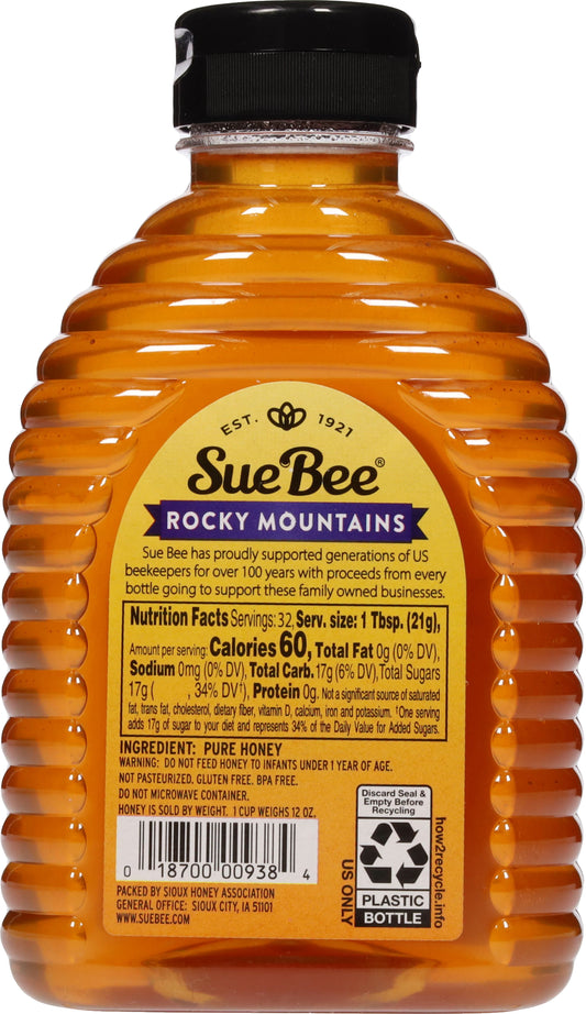 Sue Bee Honey Regional Rocky Mountains USA Honey, Strained, Unfiltered Beekeeper-Owned Co-op Honey, 24-Ounce