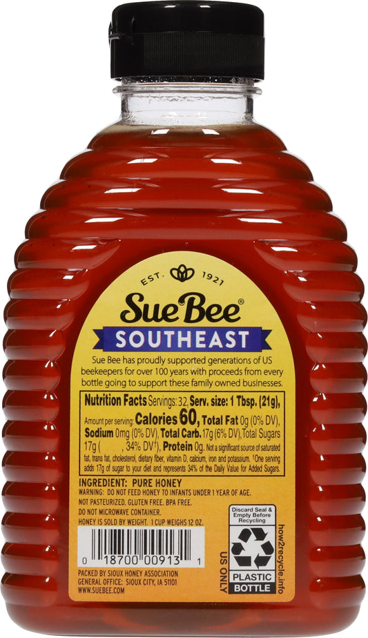 Sue Bee Honey Regional Southeast USA Honey, Strained, Unfiltered Beekeeper-Owned Co-op Honey, 24-Ounce