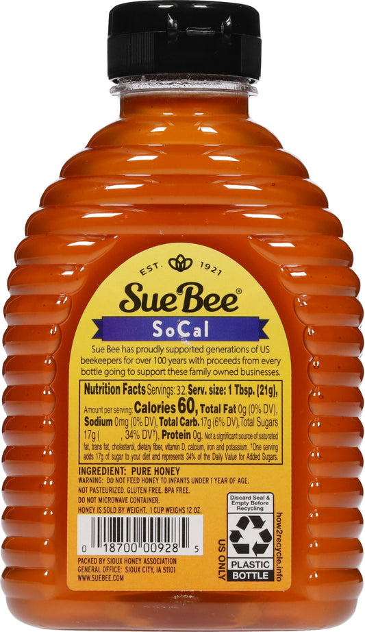 Sue Bee Honey Regional Southern California Honey, Strained, Unfiltered Beekeeper-Owned Co-op Honey, 24-Ounce