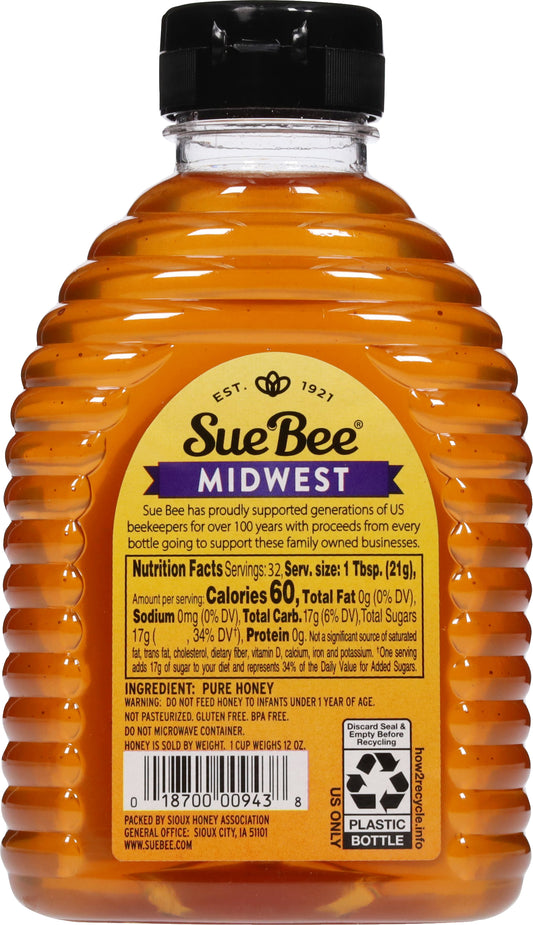 Sue Bee Honey Regional Midwest USA Honey, Strained, Unfiltered Beekeeper-Owned Co-op Honey, 24-Ounce